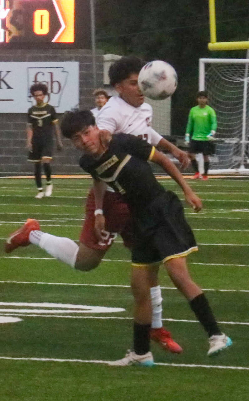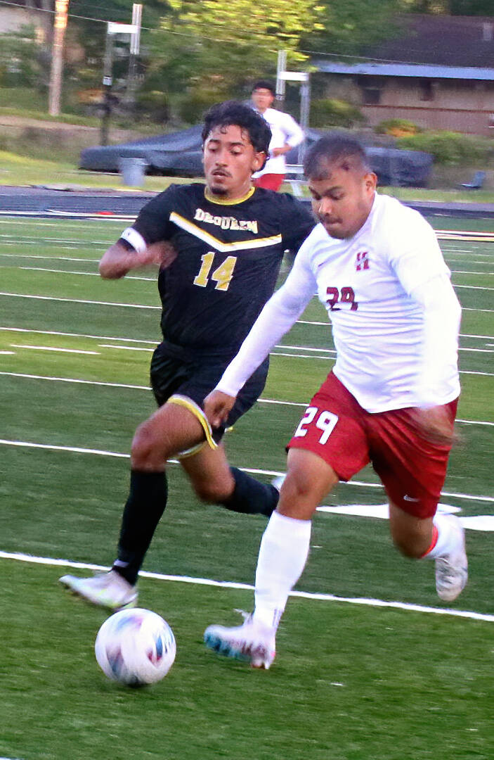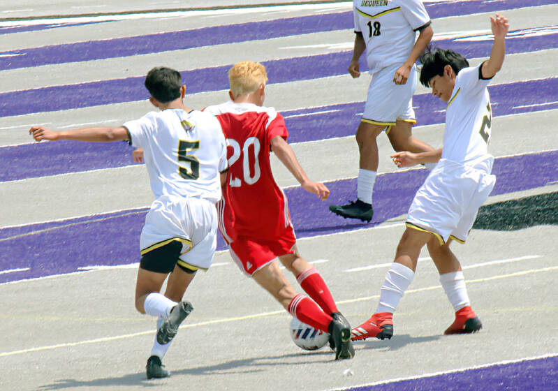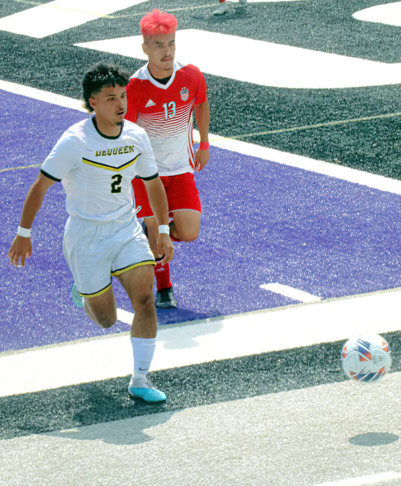 Omar Ponce de De Queen se interpone entre el balón y un defensor de Hope.