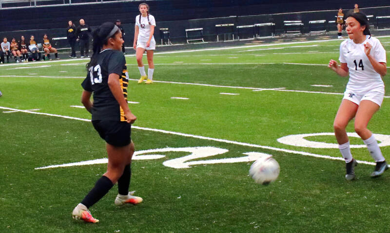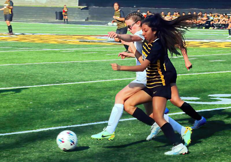 Stephanie Villeda and Lizeth Baltazar atacan la defensa de Hope.