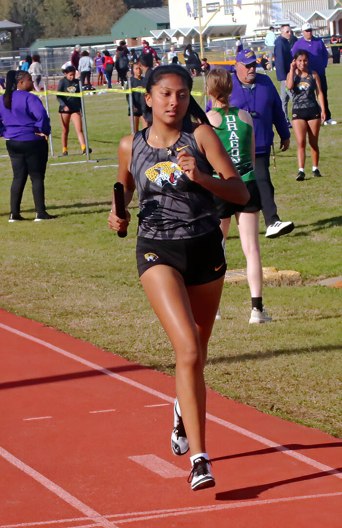 Jaden Valdez comenzó el último tramo en la carrera de relevos de 800 metros tras tomar el batón de Marlene Téllez.