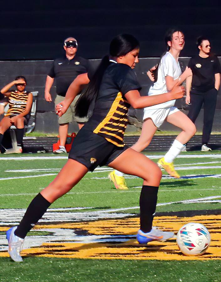 Nancy Martinez controla el balón en el extremo del campo en la victoria 1-0 de las Leopardesas.